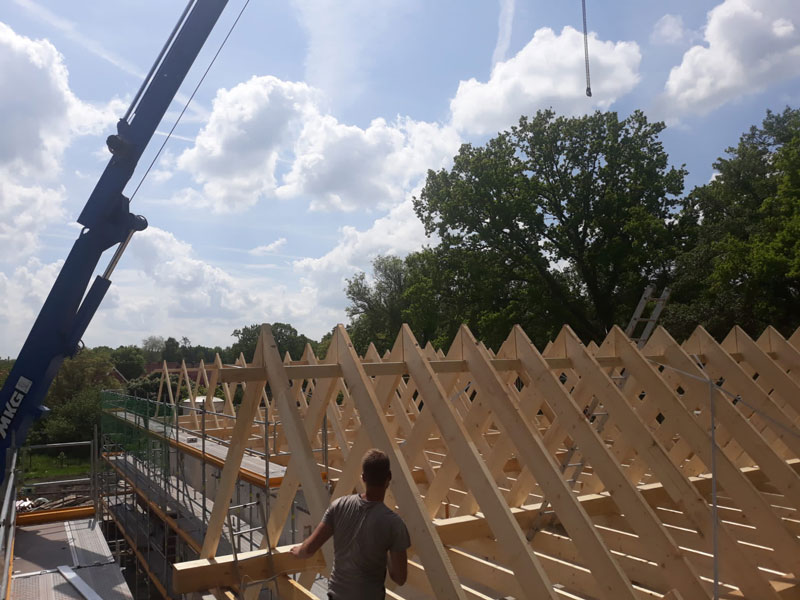 Das Team der Zimmerei Haak verkleidet zudem Dachüberstände, sorgt für den Innenausbau und die Dämmung mit qualitativ hochwertigen Materialien und erledigt Klempnerarbeiten, wie die Montage der Dachrinnen. Dachfenster werden fachgerecht eingebaut, Dachgauben erstellt und Sturmschäden beseitigt. Außerdem ist das Ostrhauderfehner Unternehmen kompetenter Ansprechparter für Dachsanierungen. Auch werden Flachdächer erstellt und Carports aus Holz gefertigt.