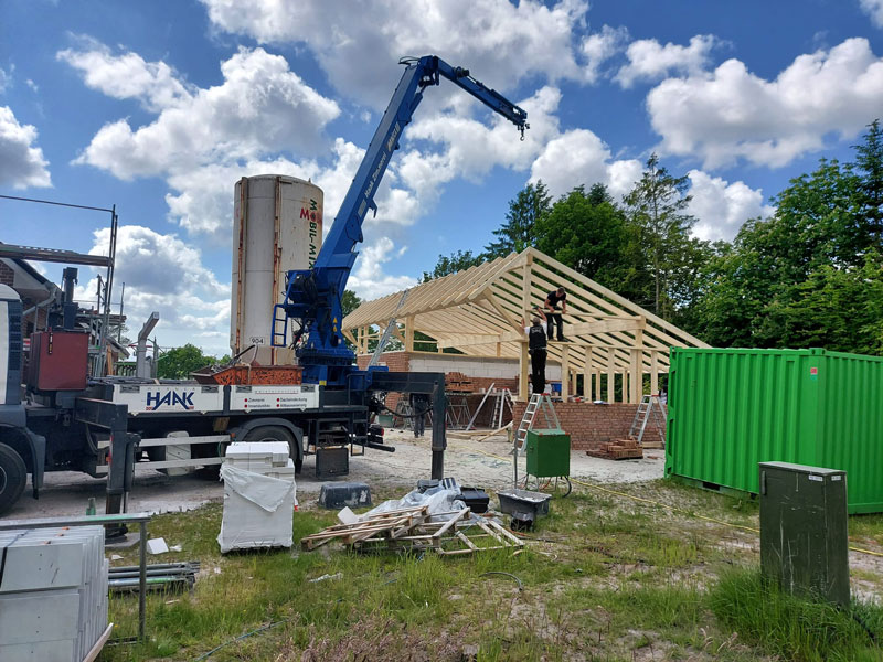 Patrick Remmers, der sich derzeit auf seine Meisterprüfung im Zimmererhandwerk vorbereitet, und Christian Kruse sind bereits seit 2002 für die Zimmerei Haak tätig. Silvia Haak, Ehefrau von Werner Haak, kümmert sich um die Büroarbeiten. Und auch ihr gemeinsamer Sohn Andre, der kürzlich seinen Bachelor of Engineering gemacht hat, unterstützte den elterlichen Betrieb.